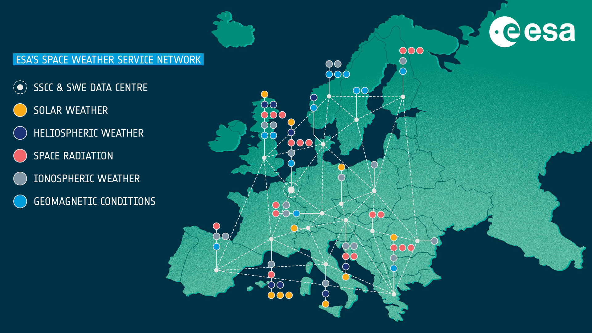 Five distributed Expert Service Centres (ESCs) have been established across Europe. These centres build on existing expertise and link a network of approximately 40 Expert Groups: institutes and organisations with specific expertise and capabilities in space weather. The ESCs are organised according to space weather domain, ensuring full coverage of space weather phenomena and impacts from solar eruptions through to impacts on ground based infrastructure: